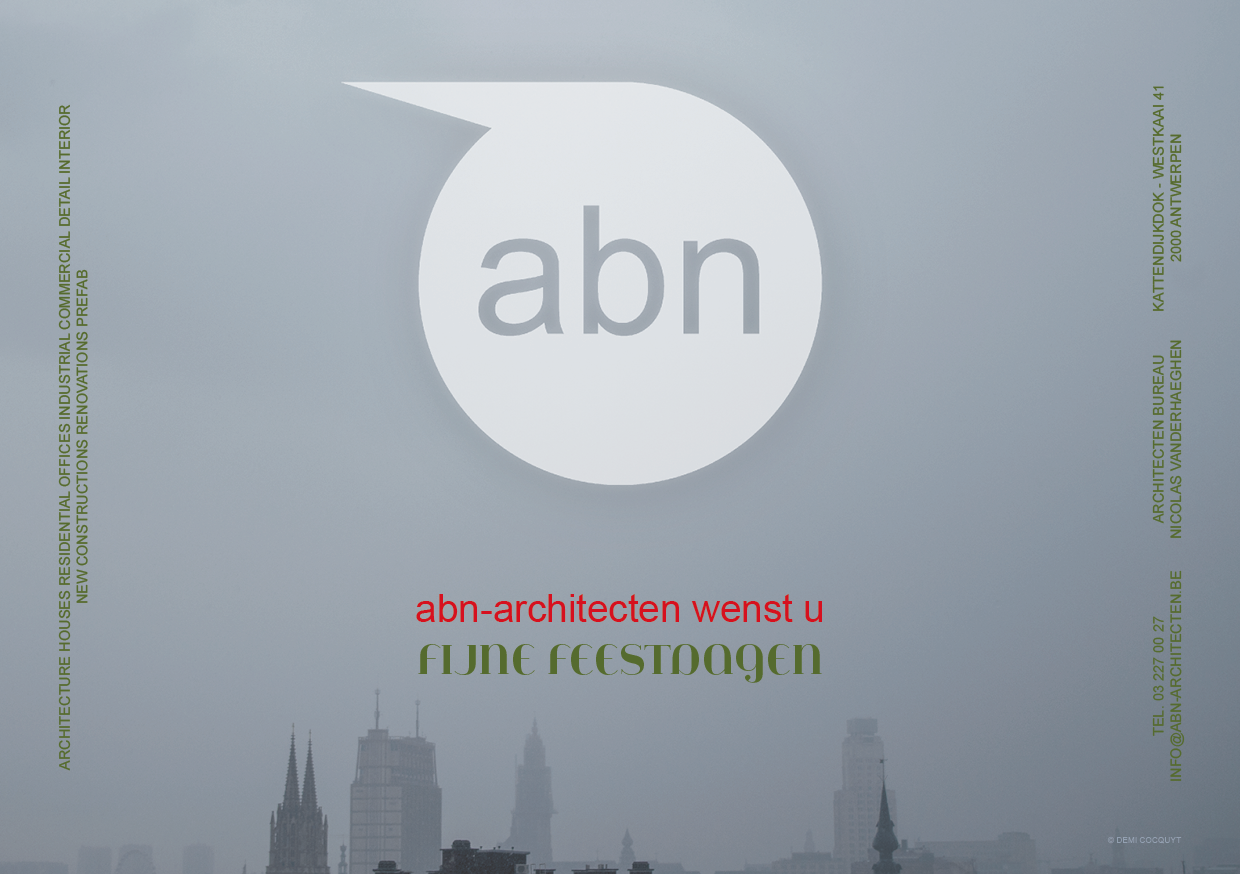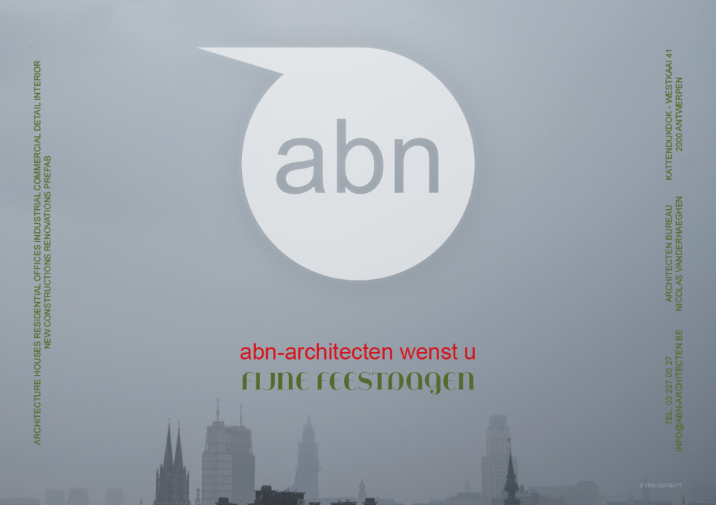 Featuring the antwerp skyline photographed during a misty morning. The design for the holiday cards is kept minimal, through the use of two colors and two fonts. Doing so, the office name is enhanced, without losing the purpose of wishing the clients a very happy holiday season.